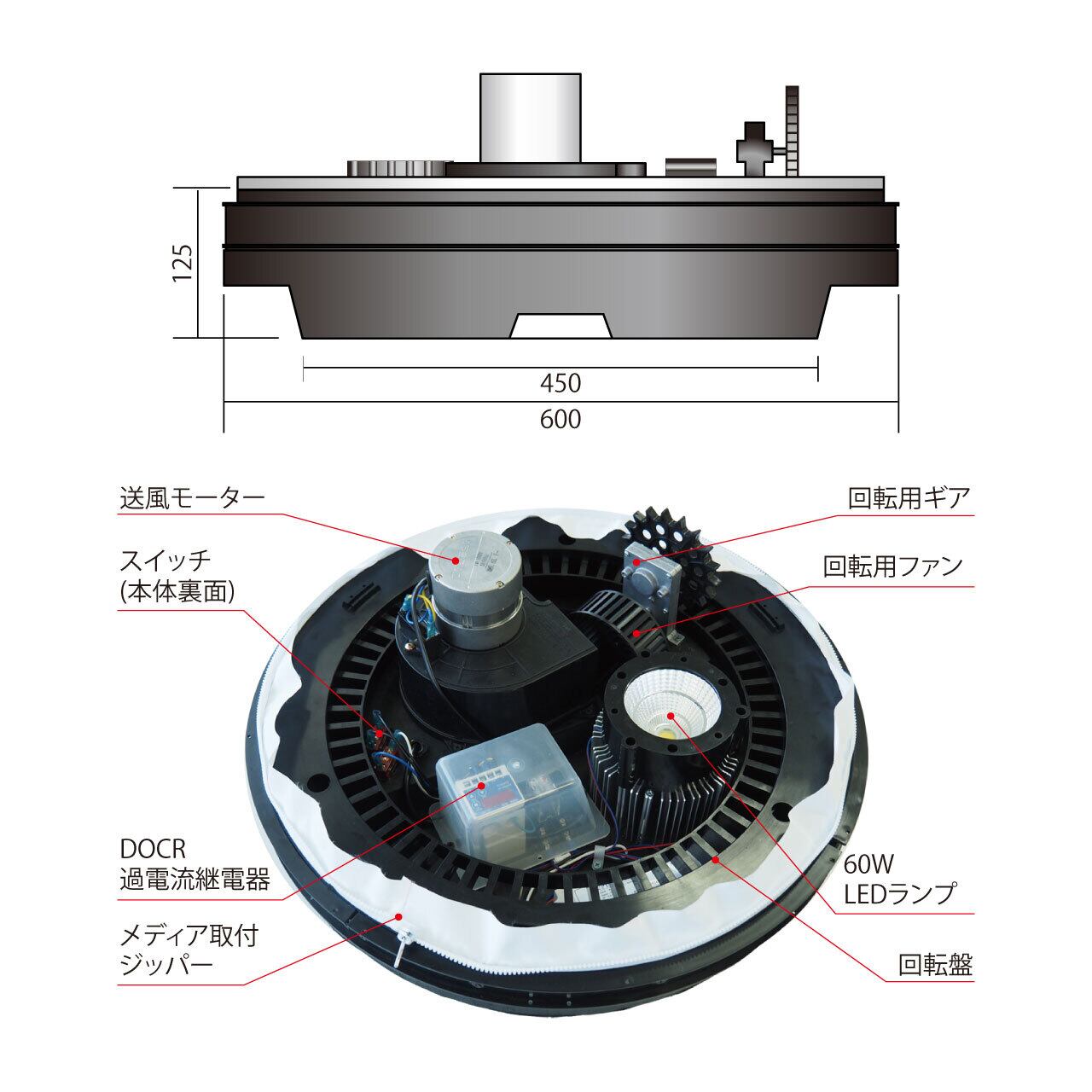 コンパクトは屋内推奨で設置部450mmφです。