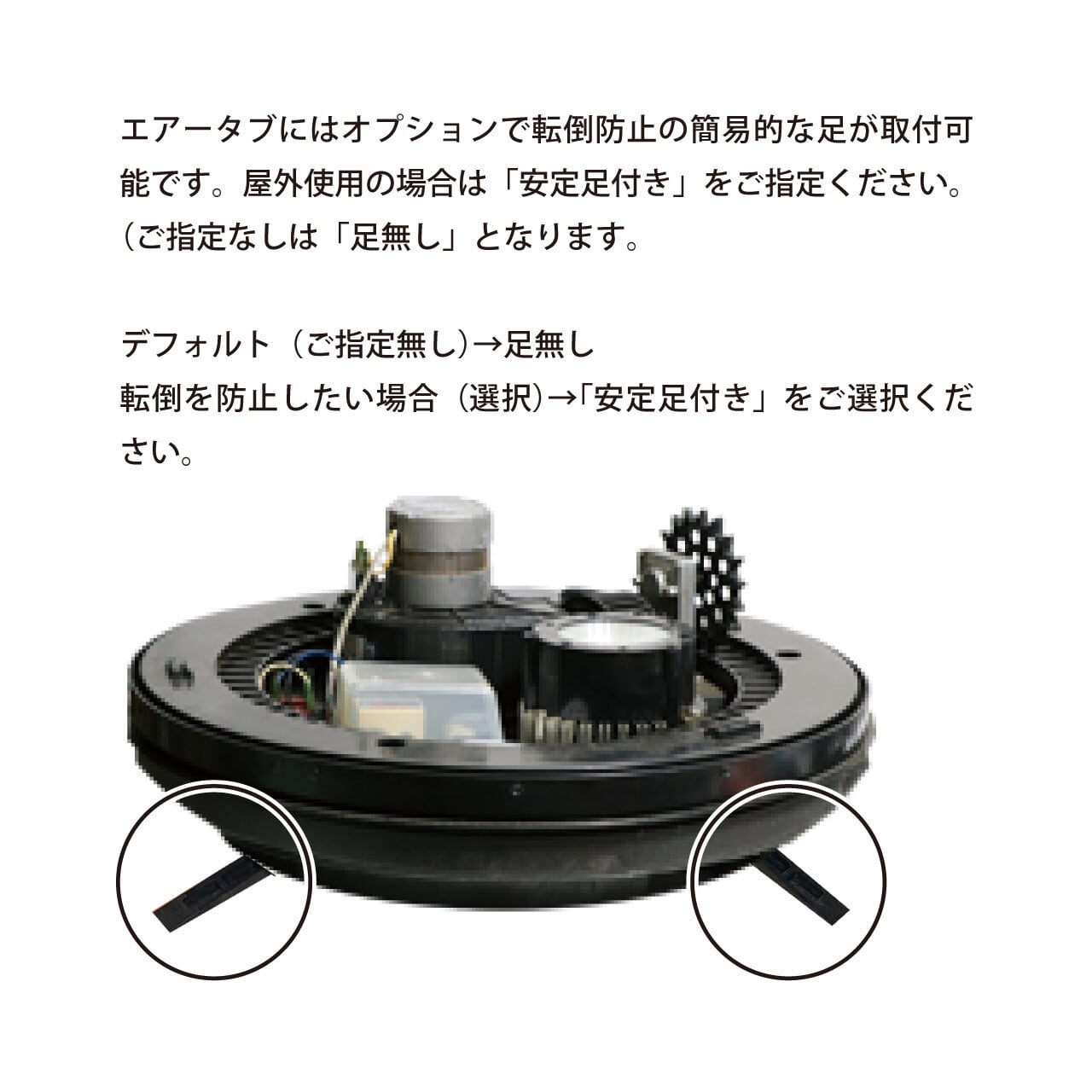 風等での転倒の恐れがありますので、屋外での使用をお考えの場合、脚付きをお選びください。